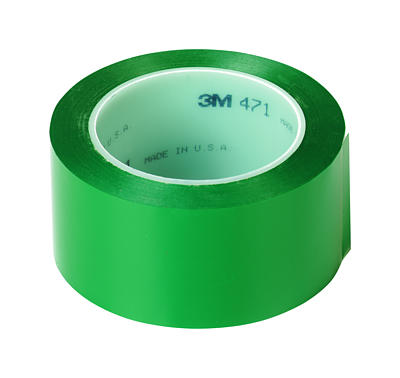 3M™ Vinyl Tape 471 green, 5.2 mil (0.13 mm), vinyl backing with a rubber adhesive, maintain color even when exposed to heavy abrasion, conformable, dead stretch properties to provide straighter lines, clean removal, good solvent resistance.